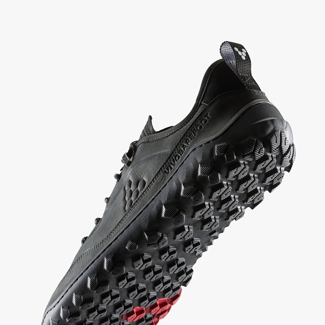 La Vivobarefoot Tracker Leather Low II Obsidian pour homme est la version actualisée de la Tracker Leather Low originale, avec une tige basse pour plus de liberté de mouvement et de flexibilité. La chaussure est désormais dotée d'un renfort en cuir et d'une semelle cousue pour plus de durabilité.